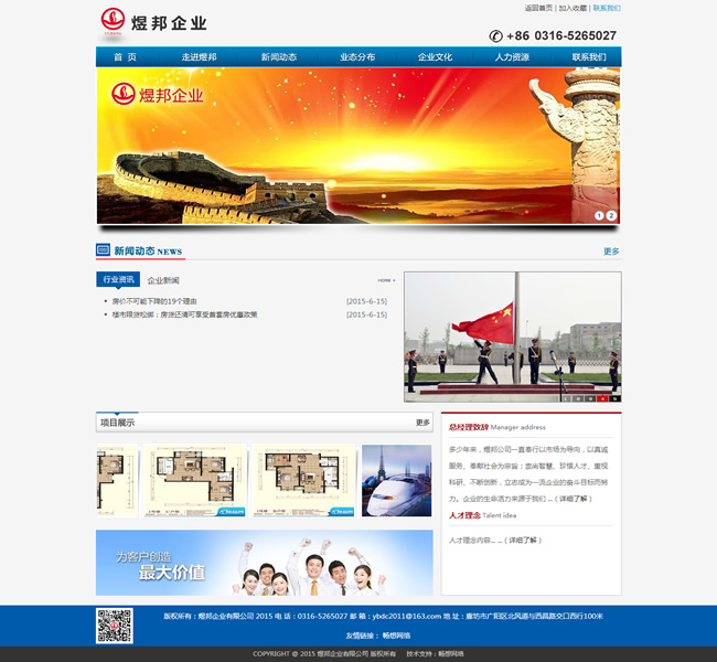 煜邦企業(yè)創(chuàng)建于2001年,公司坐落于京津走廊上的明珠城市——廊坊市,位于西昌路與北鳳道交叉口150米處。目前公司旗下有廊坊市煜邦房地產(chǎn)開發(fā)有限公司、廊坊市煜邦電力工程設(shè)備有限責(zé)任公司,廊坊市容益祥擔(dān)保有限公司、廊坊市管家物業(yè)服務(wù)有限公司、廊坊市廣陽區(qū)尖塔同德柴雞養(yǎng)殖場、廊坊市琦強(qiáng)建筑機(jī)械租賃有限公司等六家公司,形成了以電力工程、地產(chǎn)開發(fā)為主,以物業(yè)服務(wù)、養(yǎng)殖、金融擔(dān)保、租賃為輔的多元化產(chǎn)業(yè)格局。
